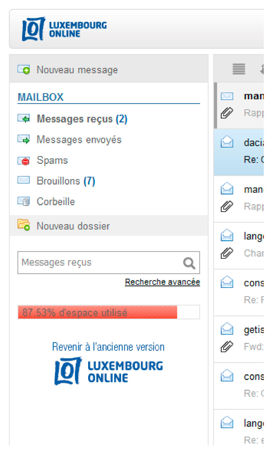 Le problème est-il présent dans le webmail (c’est-à-dire lorsque vous accédez à votre compte depuis www.internet.lu) ou ne concerne-t-il que votre logiciel de messagerie (Outlook, Thunderbird, etc.) ?