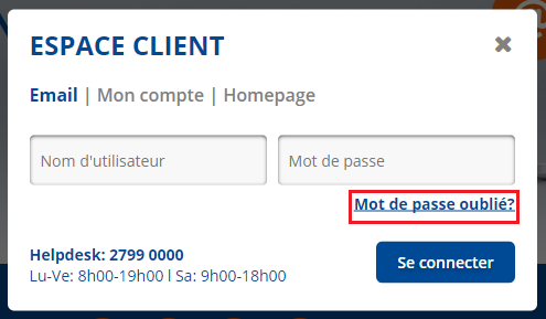Cliquez sur "Espace client" "mot de passe oublié ?" et suivez ces étapes
