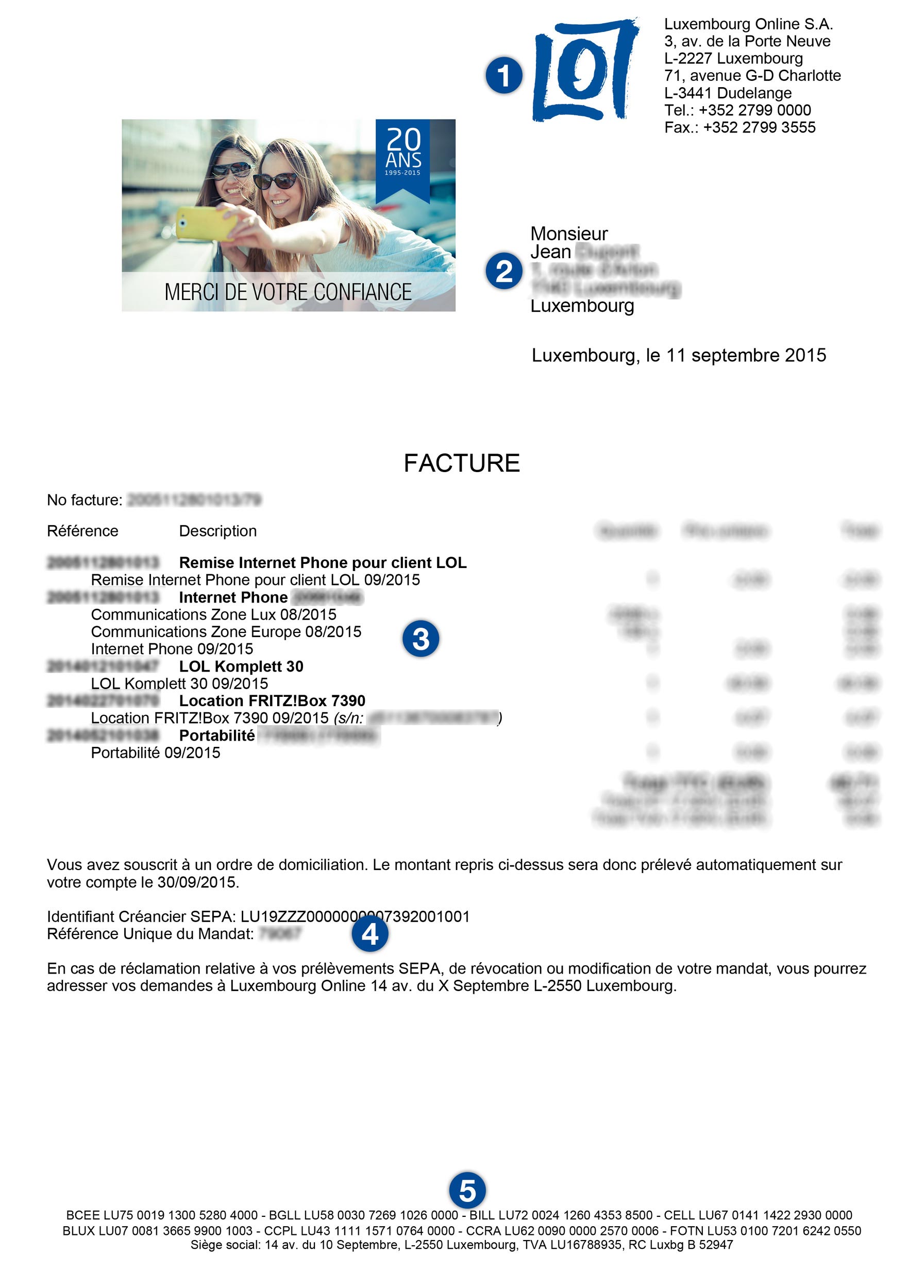 - Il s'agit ici des differents comptes bancaires de Luxembourg Online sur lesquels vous pouvez effectuer vos virements.