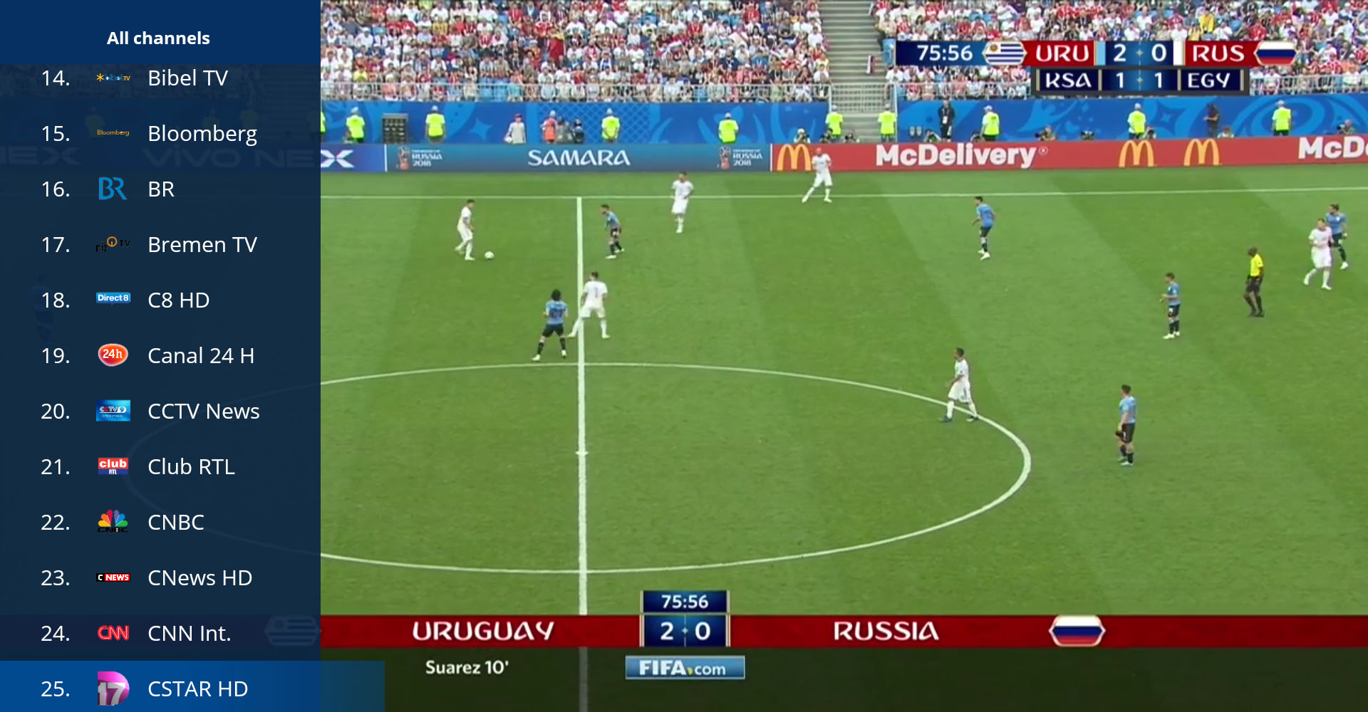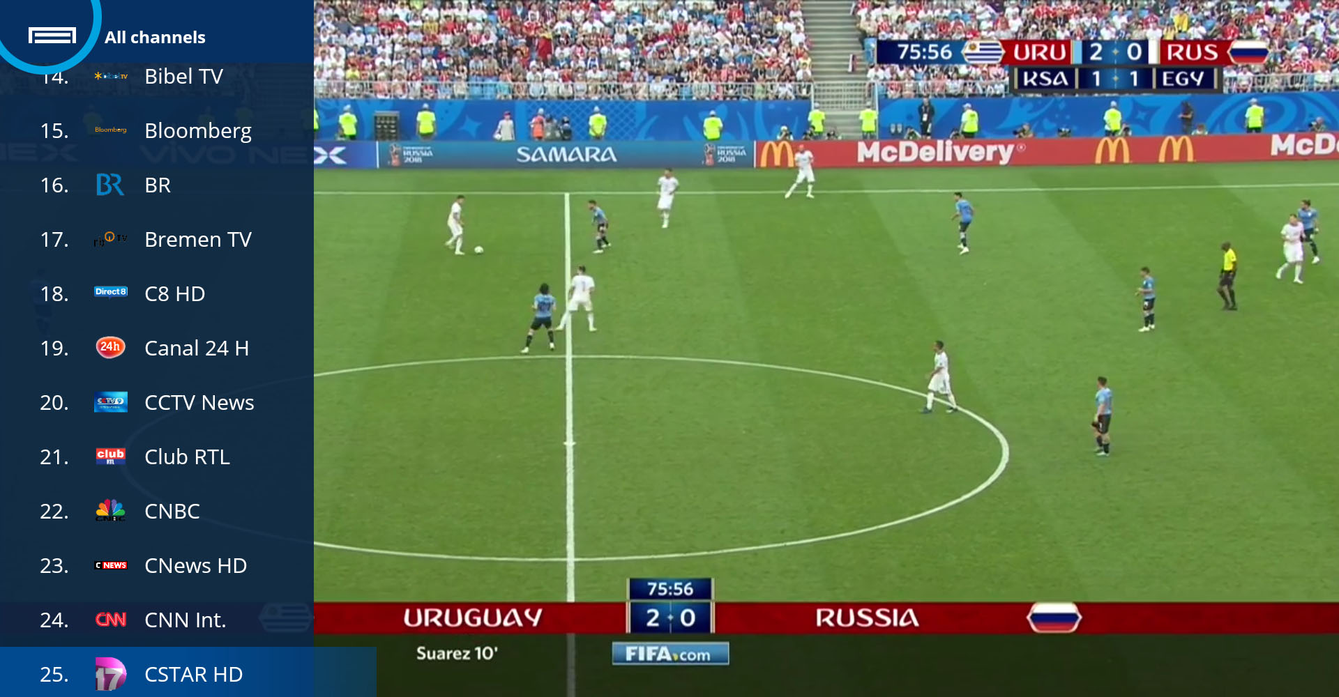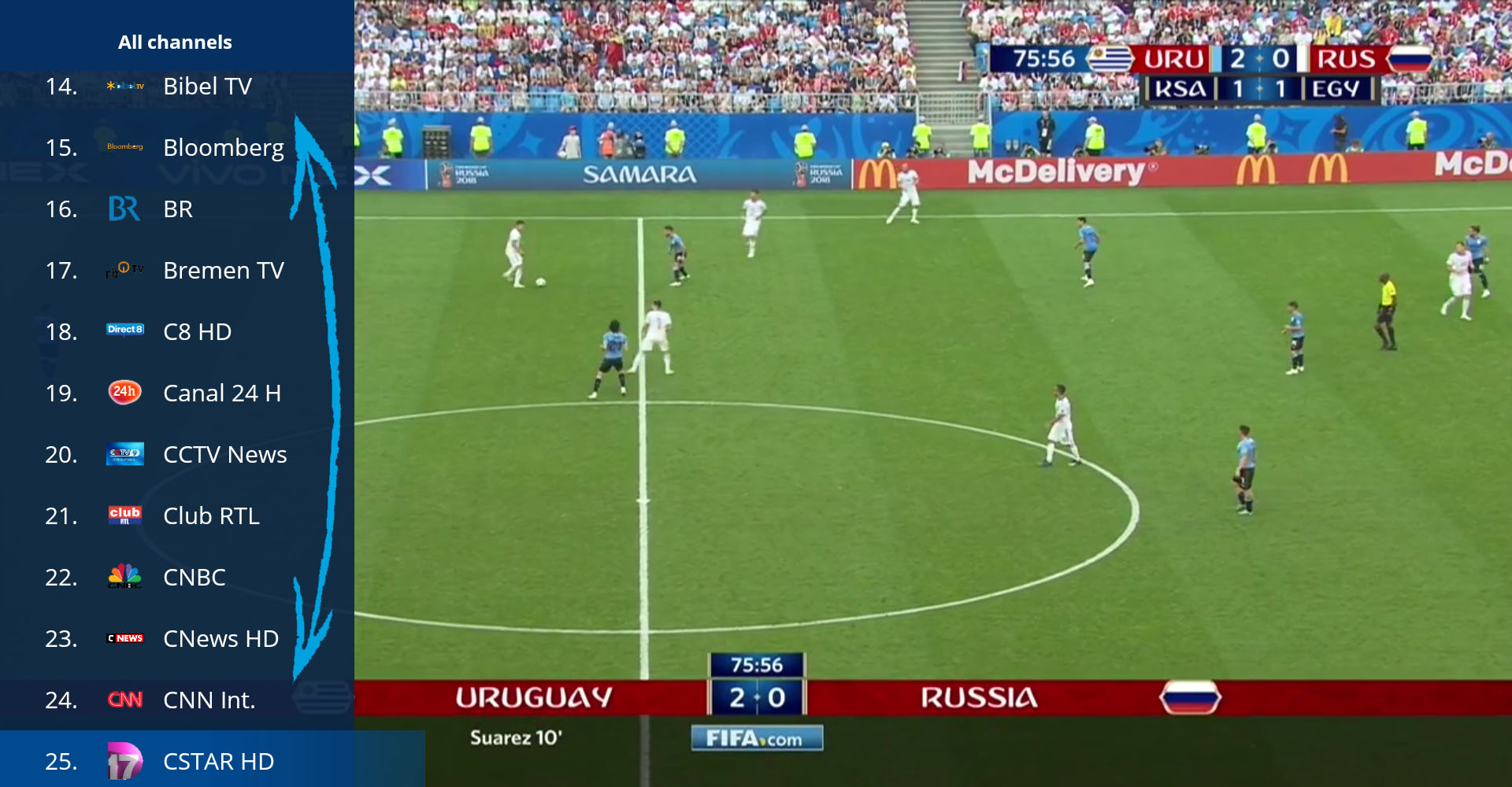 Ouvrir la liste des chaînes